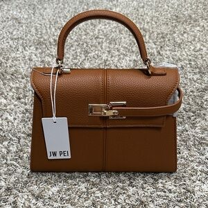 Elegant brown leather tote. Features a single shoulder strap. Perfect for everyday use.