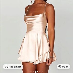 Two elegant satin dresses features a strappy back design, perfect for any special occasion. Both cream and black included. Size medium, never opened or worn