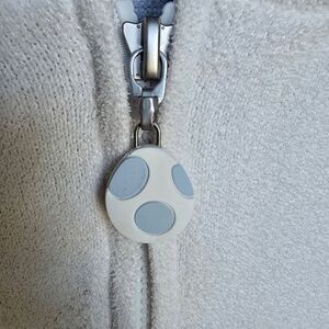 Soft pale blue & white knit with Yoshi egg zipper pull