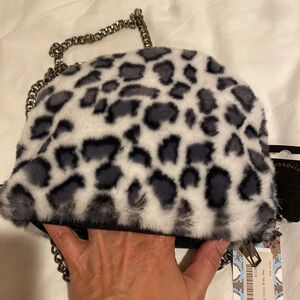 New Faux Fur Leopard Cross Body Bag Small black and white.