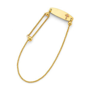 New Rea14K YELLOW GOLD Adjustable Baby Girls CROSS ID Bracelet 4.5" TO 7 inches