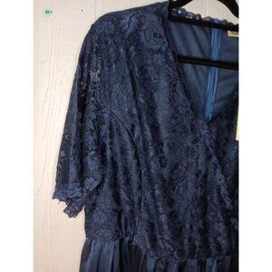 Nemidor Women Plus 18 Navy Blue Lace Stretch V Neck Cocktail Retro Dress Zip NWT