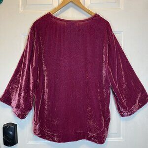 The Tommy Bahama SILK Fuchsia Velvet Sands Tie Neck Pullover Blouse is a luxurious and stylish addition to any woman's wardrobe. Made from viscose and silk velvet fabric, this blouse features a tie V-neckline and unique tasseled accents. The solid pink color, 3/4 bell sleeves, and relaxed fit make it a versatile piece suitable for all seasons. Machine washable for easy care, this blouse exudes a fancy and elegant style that is perfect for those who appreciate high-quality craftsmanship and attention to detail.