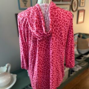 Stylish leopard print hoodie with 3/4 sleeve. Super cute and unusual color combination of pink and red! Bust measures approx 21 inches from pit to pit. And length is approx 25 inches. Excellent condition and non smoking home.