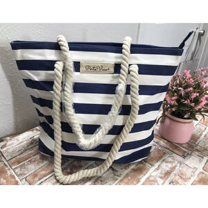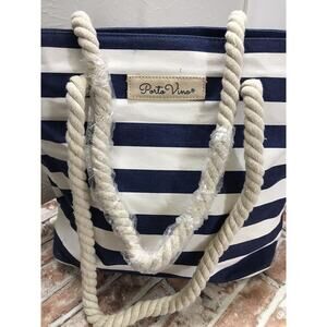 Porto Vino Beach Wine Bag Canvas Blue/White Stripes Holds 2 Bottles Of Wine NWT