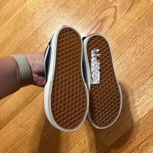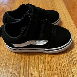 Stylish Vans sneakers for kids and toddlers. Black with white accents. Comfortable and durable. Size 8. Barely worn, practically new.
