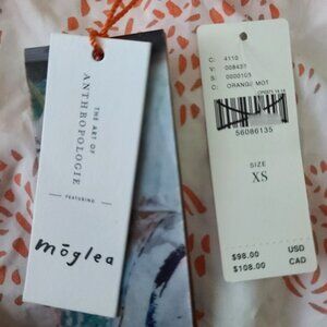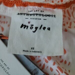 Anthopologie Moglea Danae Poplin Babydoll Blouse XS White/Orange Boho NWT $98