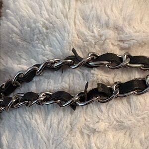 Silver-toned chain strap and metallic accents.