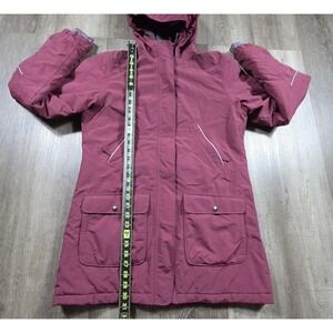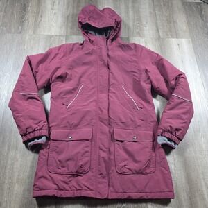 LANDS END Squall Waterproof Rain Jacket Womens Small Maroon Hooded Fleece Lined
