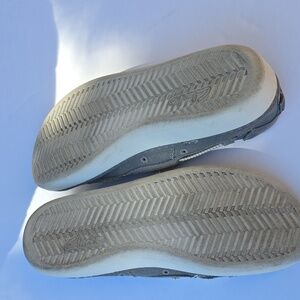 Stylish gray canvas boat shoes by Clarks. Ideal for casual outings. Comfortable and versatile.