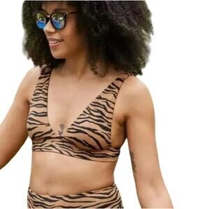 Aerie Tiger Print Triangle Bikini Top NWT Small Swimwear NEW Brown Black Animal