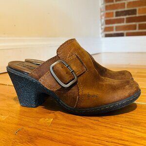 Born Womens Mule Size 8 Brown Leather Block Heel Clog Comfy Shoe