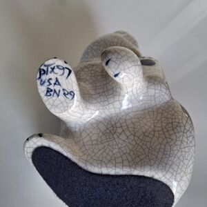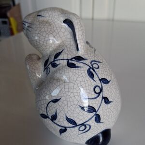 Collectible ceramic crackle finish rabbit figurine from the Dedham Potting Shed Company. Dated 1997 and hand-signed.