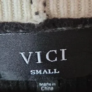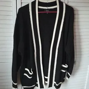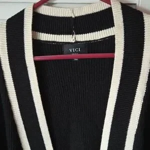 VICI cream and black sweater no buttons and pockets on each side. Super warm and great with any outfit to throw on. super warm and cozy❣️