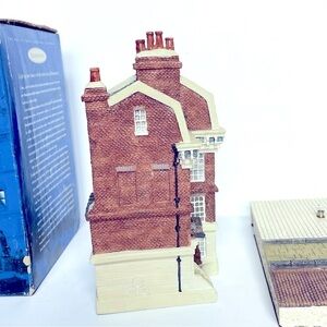 Excellent condition. All lighting features working. Original box and original packaging. Includes building, platform, lamppost, bulb. One small blemish on roof, see pictures. Exquisite details, hand painted, vintage collectible light up buildings houses streets of London.