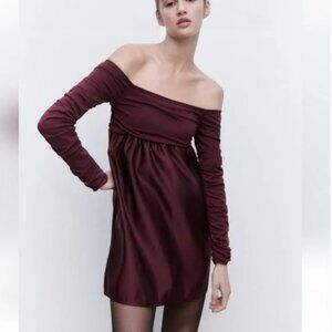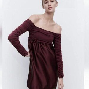 NWOT ZARA COMBINATION KNIT MINI DRESS RUCHED SLEEVE BLOGGERS FAV