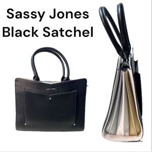 NWT Sassy Jones Charell Black and White Accordion Pleated Satchel