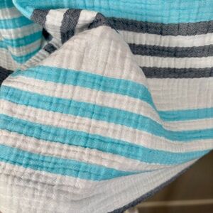 NWOT Habitat White Blue & Gray Striped Pullover Top Size Small