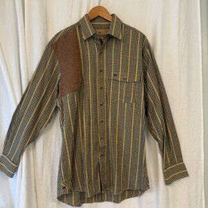 King Ranch - Quilted Shoulder & Elbows Mens L Plaid Shooting Dress Shirt NWOT