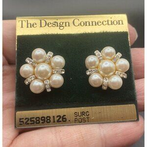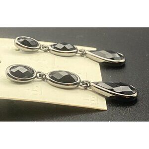 3 Pairs pierced earrings - Trifari black crystal dangle, Style & Co silver tassel, The Design Connection white pearl flower with rhinestones.