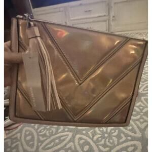 Mark Fran Faux Leather Clutch Bag Pink Iridescent Chevron Zip Tassel Bag Purse