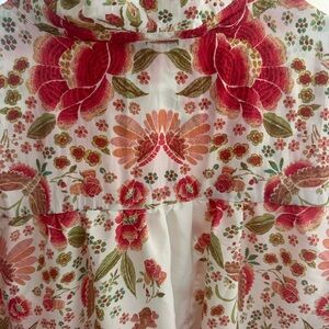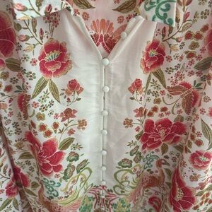 Elegant floral top by Rose & Olive. Features coral and olive floral design. Ideal for a chic look.