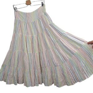 SWF S/W/F Linen Rainbow Candy Strip Tiered Ruffled Layered Skirt Size S