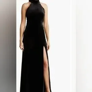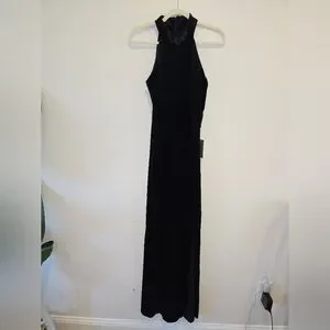 Elevate your style with this chic black halter maxi dress. Perfect for evening events, it offers a sleek and sophisticated look.