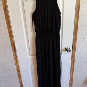 Step out in style with this elegant black sleeveless jumpsuit. Perfect for any occasion, it offers a sleek and sophisticated look.