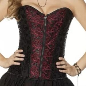 Spirit Halloween Red and Black Zipper Lace-Up Boning Corset Women Size Large