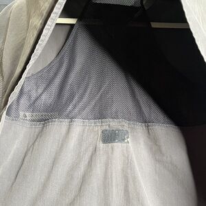 Note the 4th button is a bit chipped as shown on pictures. Also the second button from the bottom does seem to be a different kind of button. The shirt does come with an extra button in the interior tag. Besides that, no rips or stains.