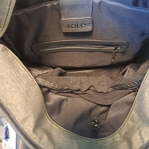 Reposhing this Lole tote backpack. Strong straps and multiple pockets. Bag is olive green with black accents. ( Looks gray in some photos) ) Holds tons with lots of organization. Sleeve for yoga mat if you open zippers. Great for travel or everyday.