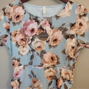 PinkBlush Light Blue Rose Floral Fitted Maternity Dress Size Medium