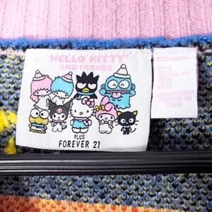 Forever 21 Hello Kitty sweater in multicolor knit with bold cartoon character pattern and button-front cardigan style. Women’s size 1XL. Playful color blocking and oversized fit lean into kidcore attitude while reviving nostalgic Y2K energy.