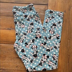 LuLaRoe Blue Leggings with Minnie Mouse Print