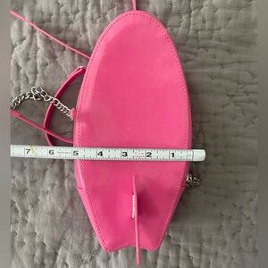 Betsey Johnson Surfs Up Pink Surfboard Crossbody Bag Zippered Silver Tropical