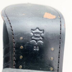 H&M Leather Western Cowgirl Core Block Heel Black Ankle Cowboy Boots Size 38