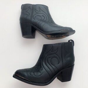 H&M Leather Western Cowgirl Core Block Heel Black Ankle Cowboy Boots. Great boot for an edgy look. Size 38