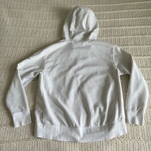 Boxy fit, full zip-up, hooded, pockets, nike logo on the arm, french terry interior, heathered super light gray