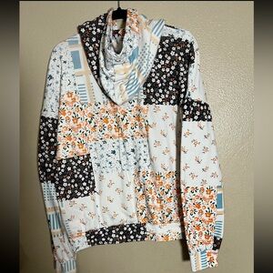 AMPERSAND AVE Floral and Leaf Patchwork Print Hoodie with Lace Drawstrings XXL