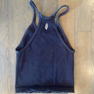 FP Movement M/L Happiness Runs Crop Tank/bra Deepest Navy Blue Ribbed Tank- Only worn once but there is a small patch of pill on front from cross body. Color is closer to grey/black even though Free People labels this top as ‘navy.’ Logo on back is still on the ribbed fabric but after a few more washes their logos tend to come off, as the inside is already coming off and is the same material. No trades