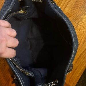 Tory Burch navy blue Fleming, convertible Woven shoulder bag EUC