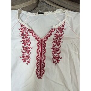 St Johns Bay womens L shirt top blouse white v-neck with embroidery design