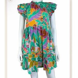 House of Harlow 1960 Women's Tired Ruffle Mini Dress Coltraihe Green Tropical