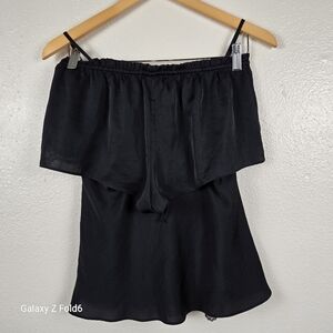 Victoria’s Secret Black Lace Trim Satin Pajama Set Top & Shorts Women’s Small