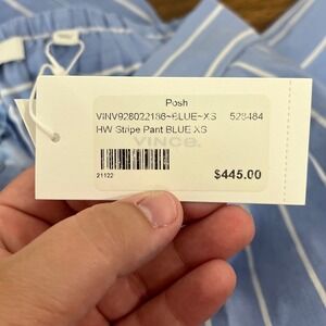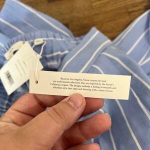 Vince Womens Pants XS NWT $445 Linen Cotton Stripe Blue Pant Pull On High Rise