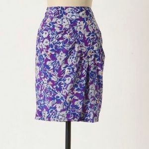 Anthropologie skirt, Fei silk skirt, floral print silk skirt, Anthropologie floral clothing, knee length skirt, special occasion skirt, wedding guest outfit, boho chic skirt, feminine Anthropologie style, designer silk bottom, elegant day-to-night outfit, purple floral skirt, Anthropologie rare style, statement skirt for women