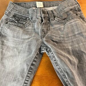 Light distressing on hems.