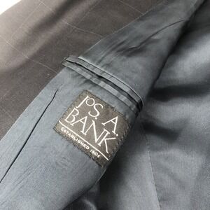 Jos. A. Bank Mens Blazer Box Plaid Black 2 Button Wool & Cashmere Blend 42R