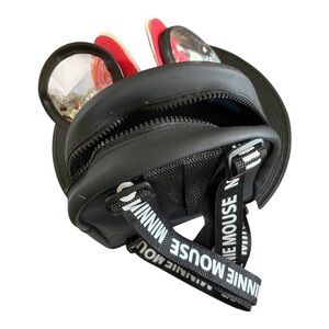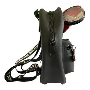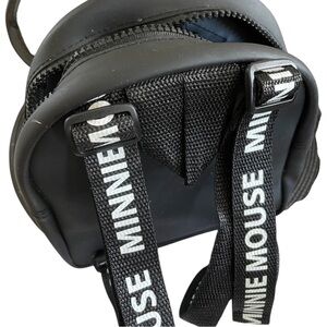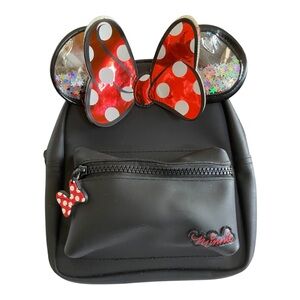 Charming black backpack featuring a red polka dot bow and Minnie Mouse design. Perfect for Disney fans.